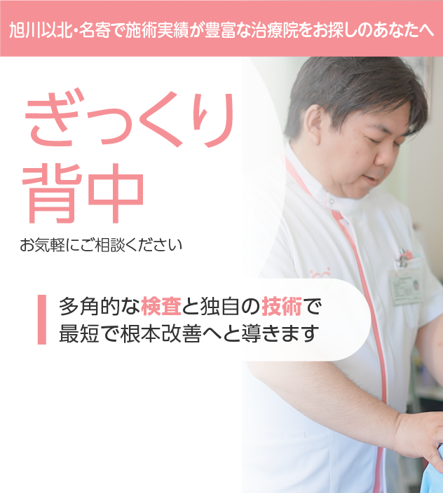名寄で60年以上にわたり、地域の皆様から信頼され続けています。のべ10万人以上の方々に施術を提供してまいりました。