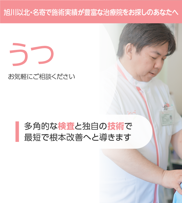 病院やほかの治療院で改善しなかったとしても諦める必要はありません。様々なうつ病の豊富な施術実績を誇る当院にお任せください。