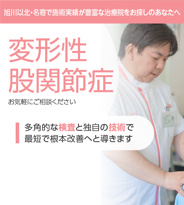 変形性股関節症は早めに対処すればするほど、改善までの期間も早くなります。一人で悩むことなく、お気軽にご連絡ください。